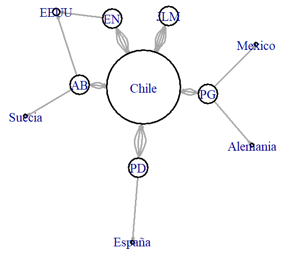 Para el análisis de las redes de colaboración bajo las tres relaciones; entre (investigador/investigador, investigador/centro e investigador/país), se aplicó el enfoque de análisis de redes sociales (social network analysis), usando el software de programación RStudio, con el objetivo de facilitar la visualización y comprensión de las mismas.