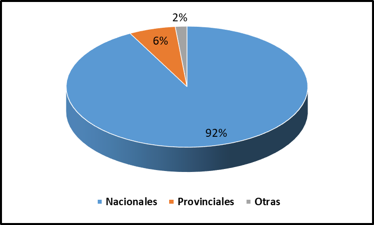 En esta instancia, mediante la observación virtualizada de los sitios web, como se aclaró en el apartado metodológico, se detectó que hay 4 universidades provinciales públicas y 1 que se la ubica dentro de otras universidades (ya que no es nacional ni provincial), como puede apreciarse en porcentajes en el gráfico 1.