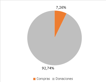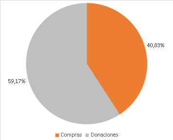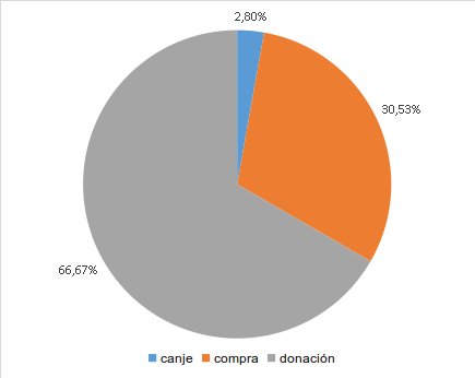 Es preciso subrayar que, más allá de la disminución que experimentaron las donaciones en términos relativos, lo cierto es que continuaron siendo la fuente principal de aprovisionamiento bibliográfico para las bibliotecas populares bonaerenses. Para 1914, en la ABR estas representaban aún el 66,67% de los ingresos, frente al 30,53% de las compras y al modesto 2,8% del incipiente canje interbibliotecario (Figura 4). Si bien la evolución no fue lineal ni progresiva, resulta ilustrativa la diferencia en las proporciones respecto de la memoria de 1912: allí el renglón de compras había debido ser excluido del presupuesto de gastos debido a la exigüidad de los recursos disponibles que solo habían alcanzado para mantener en funcionamiento el servicio (Asociación Bernardino Rivadavia, 1912) Los balances de 1914 –y, aún más, los de 1915– demuestran, por el contrario que la subvención nacional, sumada al éxito de las campañas de socios, permitió un incremento del 45,52% en las entradas anuales que pudo ser reinvertido en la adquisición de nuevo material de lectura.