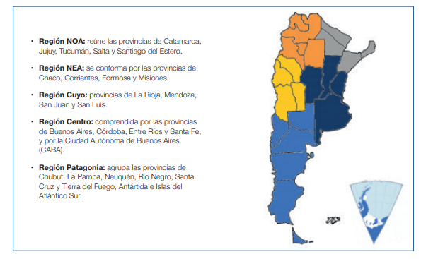 Argentina. Ministerio del Interior (2020). Regiones. Región del Noroeste, Región del Noreste y Región de Cuyo. Recuperado de https://www.argentina.gob.ar/interior