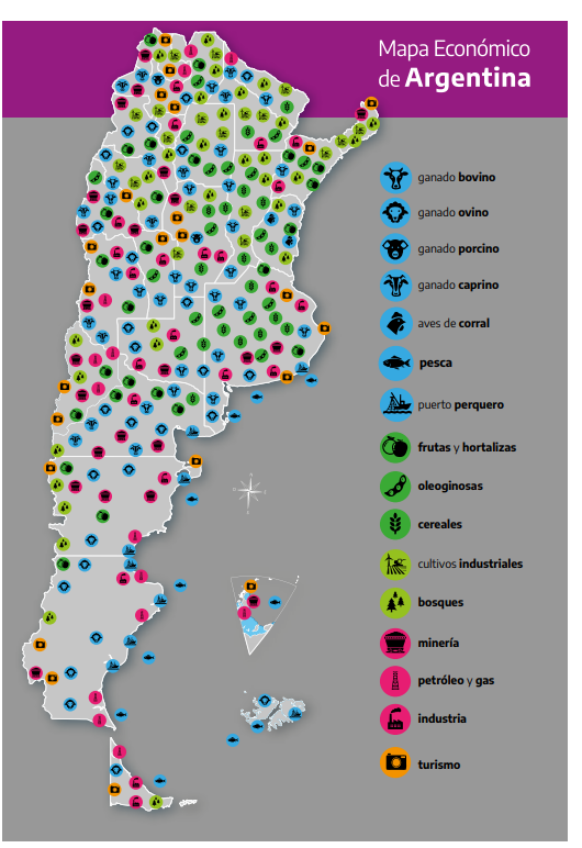 En este orden de ideas es importante ubicar a Argentina como un país con un tenaz y decidido liderazgo que, junto con Brasil, han sido quienes en la región trabajan arduamente en la eliminación del hambre, a través de las economías sociales, solidarias y populares y de la agricultura familiar que son para este artículo el punto de partida para pensar cómo estas se vinculan con la cultura y la educación. Esto también implica reconocer, que los ordenamientos espaciales albergan concepciones, representaciones y prácticas, que plasmadas en un mapa nos permiten reconocer en sus formas cartográficas (Figura 1), como se ha pensado el ordenamiento de la naturaleza en la historia de una Nación con unos ideales particulares como se muestra en la siguiente imagen: