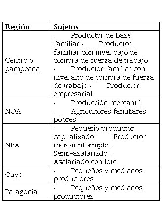 Retomando el diagnóstico de la producción y la comercialización de alimentos en el marco de la economía solidaria, social y popular y de la agricultura familiar en Argentina realizado por Fontanet (2021), podemos identificar en la Tabla 1, según las regiones del país, los tipos de sujetos que dan vida y encarnan a esta economía a la que nos referimos: