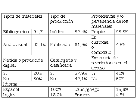 Algunos resultados a destacar sobre las características de las colecciones se presentan en la siguiente Tabla 3: