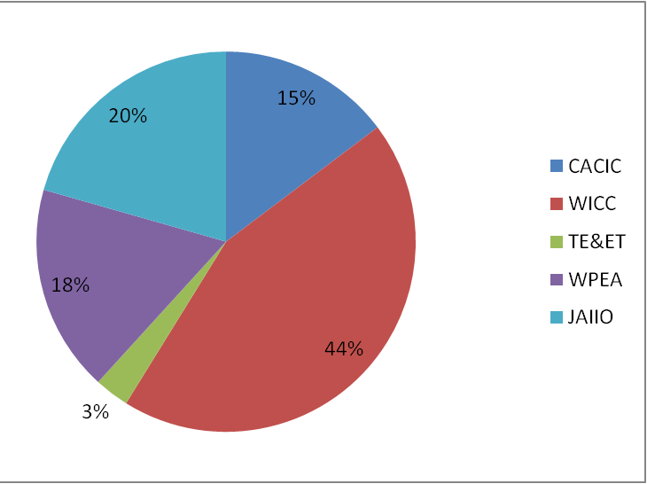 Se observa una disparidad de trabajos presentados en los congresos: en la Figura 1 se ilustra cómo del total de trabajos sobre AW, el 44% se expusieron en WICC – podría deberse a que numerosos trabajos proponen revisión de metodologías, procedimientos y evaluación de herramientas para analizar la AW. Además de presentar propuestas de mejora - seguido por JAIIO y WPEA; y en menor medida CACIC (15%) y TE&ET (3%).