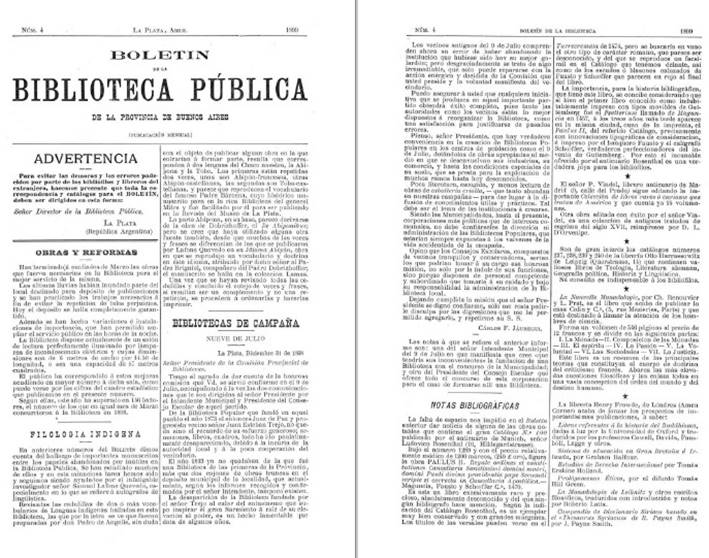 Keywords: Bulletin of the Public Library of the Province of Buenos Aires, History of libraries, Luis Ricardo Fors, Library science, La Plata, Argentina.