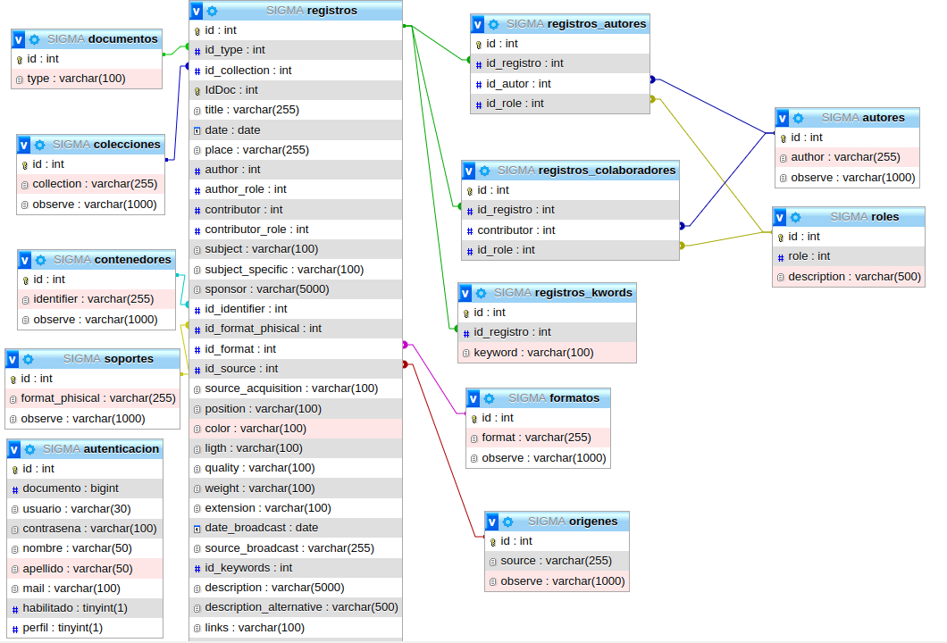 En Colombia, históricamente, el fomento de iniciativas relacionadas con el audiovisual se ha centrado principalmente en la producción, descuidando la circulación y el acceso a largo plazo. En los últimos años, la Dirección de Cinematografía del Ministerio de Cultura (Colombia. Ministerio de Cultura, 2024), la Fundación Patrimonio Fílmico Colombiano (2024), la Cinemateca Distrital de Bogotá (Cinemateca de Bogotá, 2024), entre otras instituciones y gestores culturales, han impulsado la conformación del Sistema de Información del Patrimonio Audiovisual Colombiano y estimulado la consolidación del sector a través de las becas de gestión de archivos audiovisuales, becas de realización con imágenes de archivos, la realización anual del Encuentro Nacional de Archivos Audiovisuales (ENAA) y el Encuentro de Investigadores de Cine, así como la publicación de libros de investigación sobre memoria audiovisual. Estas iniciativas se han constituido en espacios de diálogo en los cuales siempre salen a relucir dos aspectos fundamentales: la formación y una herramienta que permita hacer procesos de gestión de información audiovisual de una manera estructurada. SIGMA sería la herramienta fundamental para catalogar, acceder y recuperar información audiovisual en cualquier formato.