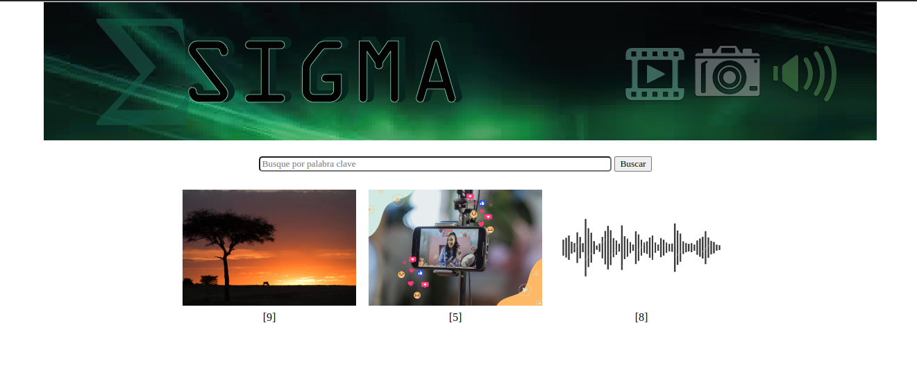 La interfaz de consulta es una aplicación que presenta el contenido sin requerir autenticación de credenciales. Su diseño relaciona las colecciones de imágenes, videos y audio, acompañadas del número de registros que contiene cada una.