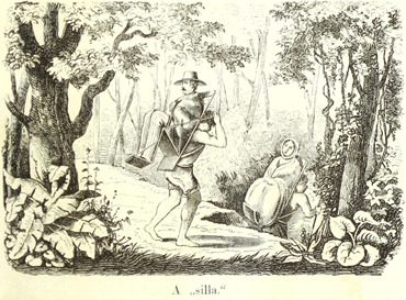 Cuando se leen los apartados del libro que circundan las imágenes, puede notarse cómo el autor emplea las mismas para edificar su relato. Por ejemplo, cuando narra su periplo por las montañas de San Bernardino, Xántus acompaña la narrativa de una imagen denominada “La silla”, misma que reproduce el grabado “Silleros in the Quindío”, en The New Granada, y “Modo de viajar en las montañas de Quindío i Sonsón” de Costumbres Neogranadinas (Figuras 1, 2 y 3 ), el autor húngaro dice: