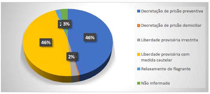 Como também já mencionado, o percentual de concessão de liberdade provisória nesses casos foi de 76,4%. Já para a totalidade dos casos de setembro de 2019, a liberdade provisória com medidas cautelares alternativas foi dada em 86% dos 23 casos.