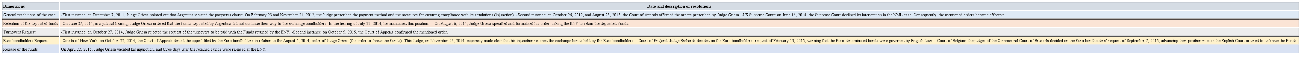 Ten days later, Argentina ignored the prescribed orders. In effect, on June 26, 2014, it deposited the equivalent of 539 millions of the US dollars in accounts of the Bank of New York (BNY) for the payment to the exchange bondholders, omitting payment to the plaintiffs. The next day, Judge Griesa ordered the BNY to freeze those Funds, opening a complex dispute around them (NML, 2014b).