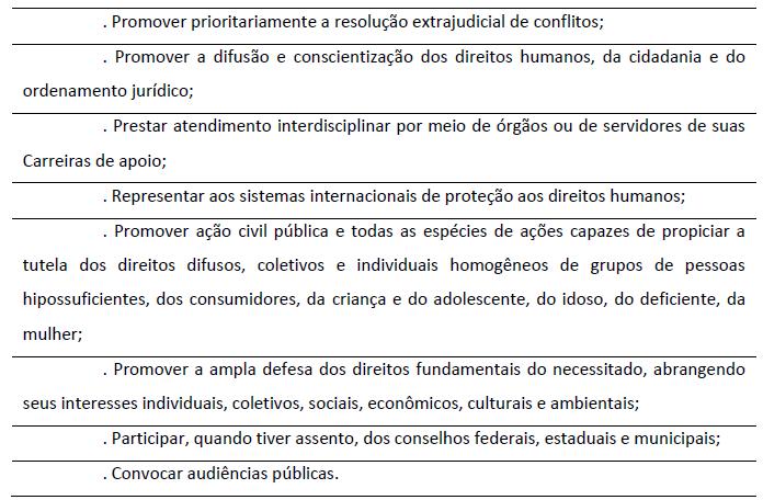 Algumas importantes funções institucionais da Defensoria Pública que podem ser consideradas não tradicionais são: