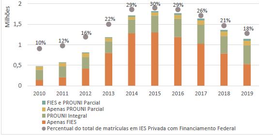 FUNDO DE FINANCIAMENTO ESTUDANTIL (FNDE). Financiamentos Concedidos, 2010-2019. Disponível em: <http://www.fnde.gov.br/index.php/financiamento/fies-graduacao/mantenedora-e-ies/financiamentos-concedidos> Acesso em 15/01/2022.
