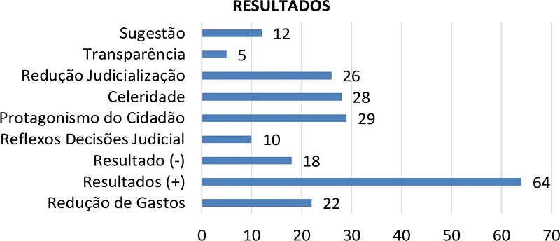 No gráfico 2 estão relacionadas informações de validação das respostas à judicialização da categoria “resultados”. Esta categoria apresenta as constatações positivas e negativas que os estudos expõem como resultados da aplicação das estratégias.