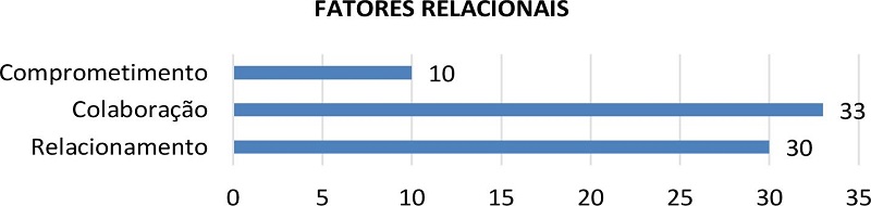 Na categorização representada no gráfico 3 estão elencadas as ações interpessoais e os reflexos positivos alcançados pelas conexões contributivas de relacionamento. Os códigos descrevem atitudes colaborativas, integração positiva entre instituições, melhora na comunicação, acessibilidade entre magistrados e gestores, comprometimento e engajamento das equipes, contribuição e cooperação entre os atores envolvidos nas respostas institucionais e extrajudiciais.