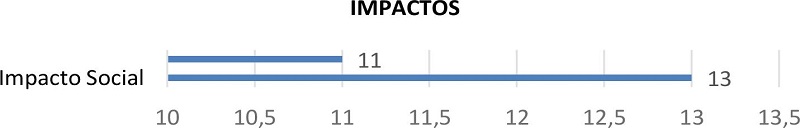 A categoria “impactos” representada pelo gráfico 6 é composta por dois códigos, onde políticas públicas, constatação de melhorias que atendem uma pluralidade de indivíduos, representa uma alteração na política em face das decisões judiciais ou dos programas e ações implementados para desjudicialização.