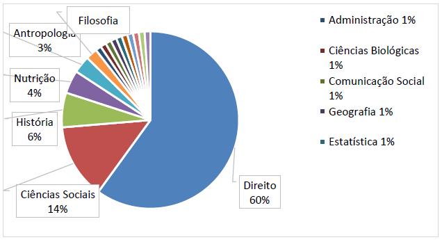 O fato de a maioria das produções ser de autoria de pessoas com formação primariamente jurídica modula a análise e conclusões que serão apresentadas em relação aos demais dados da pesquisa, sendo necessária a consideração dos diferentes enfoques que a graduação de Direito promove na pesquisa de seus atuantes.