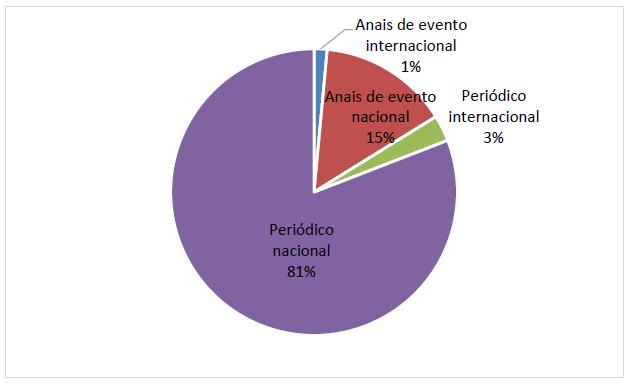 Finalmente, o gráfico abaixo apresenta a distribuição dos trabalhos abordados nesta pesquisa em relação ao tipo dos veículos de publicação dos autores referenciados.