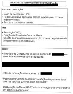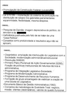 Diante disso, foi defendido o fortalecimento da secretaria administrativa que se pautaria em conceitos como produtividade e resultados contando para isso com todos os trabalhadores efetivos. O que se ocultou nessa época era que, mesmo adotando-se premissas gerenciais, a questão política não estaria de fora da gestão. Silenciou-se também que a imagem depreciativa do político e da LEGO pela sociedade não poderia ser alterada apenas com melhorias de práticas relativas aos trabalhadores e à gestão administrativa, sem se discutir o modus operandi do poder legislativo em si (Fuks, 2010).