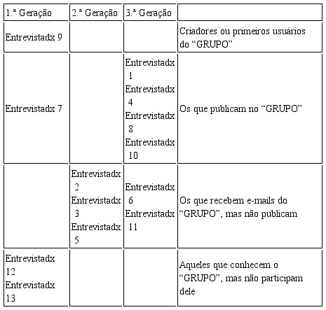 Além das entrevistas, foram coletados dados secundários para análise documental. Tendo em vista a possibilidade dialógica e o advento das novas tecnologias, foram coletados e-mails trocados no GRUPO, durante o período de um ano, e e-mails mais antigos guardados por um entrevistado que me foi disponibilizado para esta pesquisa, permitindo a análise de períodos recentes e remotos, respectivamente, além do cruzamento de dados provenientes de diversas fontes em cada período histórico. Acredita-se que utilizar tais dados como fontes de dados de pesquisa seja um dos aspectos originais neste artigo e figura como um de nossos desafios, mas também uma das contribuições metodológicas para os Estudos Organizacionais. O uso da internet faz parte do cotidiano de muitos sujeitos, mas não tem sido objeto de relevância nas pesquisas acadêmicas enquanto possibilidade metodológica. Também foram utilizados relatórios, boletins e reportagens diversas como dados secundários que me auxiliaram na compreensão dos discursos oficiais e conhecimentos legitimados nesse contexto social.