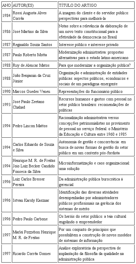 Brulon, Obayon e Rosenberg (2012) chamam atenção para uma onda de reformas após a publicação da Constituição, de 1988. Em busca na base de dados da Revista de Administração Pública, listei na Figura 2 alguns assuntos pesquisados do final da década de 1980 a meados da década de 1990. Percebi nos títulos dos artigos uma preocupação constante com reformas que pudessem melhorar a administração pública a partir do discurso do movimento gerencialista, como “cliente”, “modernizar”, “autonomia de gestão”, “concorrência”, “novas formas de gestão”, “pós-fordista”, “microinformatização”, “solução”, “mérito”, “heróis”, “empreendedor”, “sistemas de informação” e “filosofia da qualidade”. Mas essa preocupação não era só acadêmica.
