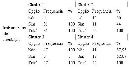 Outro assunto importante no que tange ao microcrédito é a orientação da IMF aos microempreendedores. O Quadro 6 mostra que essa variável foi importante na diferenciação dos clusters 1 e 3, sendo que nesses agrupamentos o comportamento das outras variáveis é semelhante. Contudo, nesse caso o conglomerado 1 é composto 100% por clientes que afirmaram que receberam orientação ou acompanhamento dos seus negócios. De outro lado, a totalidade do grupo 3 é de usuários que afirmaram que não receberem nenhum auxílio. Já nos clusters 2 e 4 existem as duas situações.