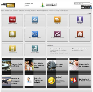 O Portal da Transparência do Distrito Federal possui um visual moderno, com fácil localização dos itens principais. A página inicial disponibiliza em formato de mosaico conteúdos como despesas e receitas públicas, convênio, compras, servidores, dentre outros, como pode ser observado na Figura 2. Além de destacar a busca dos gastos por diferentes caminhos.