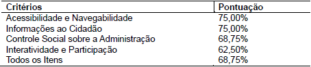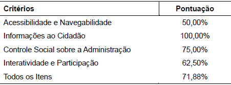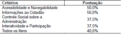 A Tabela 1 apresenta o resultado da avaliação do portal.