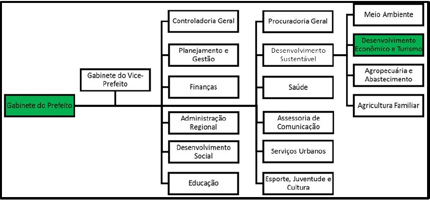 Nessa estrutura de órgãos municipais, a Secretaria de Desenvolvimento Econômico e Turismo, órgão público criado em 2013, é o único órgão que visa a articulação entre os atores sociais e econômicos municipais e do entorno para potencializar o proveito das capacidades locais, e desempenha o papel de encontrar meios para dinamizar e incrementar a economia local. É uma das menores secretarias entre as estabelecidas no município (são menos de 10 colaboradores, entre servidores e cargos de confiança). Apesar de ser uma secretaria de grande importância no contexto municipal, uma vez que busca a articulação das forças econômicas locais para melhorar a oferta de emprego e a qualidade de vida da população, ainda se trata de um órgão recente da prefeitura, que encontra alguns problemas em relação à definição de sua própria existência. Há dificuldades em relação ao diagnóstico de potencialidades locais, potenciais parcerias e de ações que promovam o melhor uso dos recursos locais. Os membros da própria secretaria reconhecem a dificuldade da gestão municipal em priorizar o tema do desenvolvimento local, visto que esta possui obrigações definidas pela União e pelo Estado.