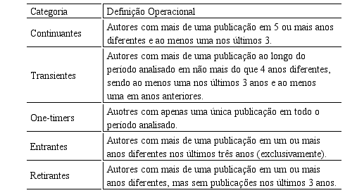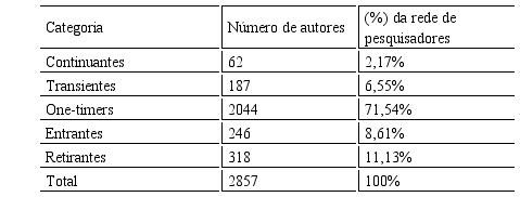 Em adição, com base no trabalho de Rossoni et al (2010), foi realizada a análise de categorização do perfil dos autores que compõem a rede de pesquisadores de AP no Brasil, definindo qual o enquadramento de cada um deles a partir dos critérios descritos no quadro 2.