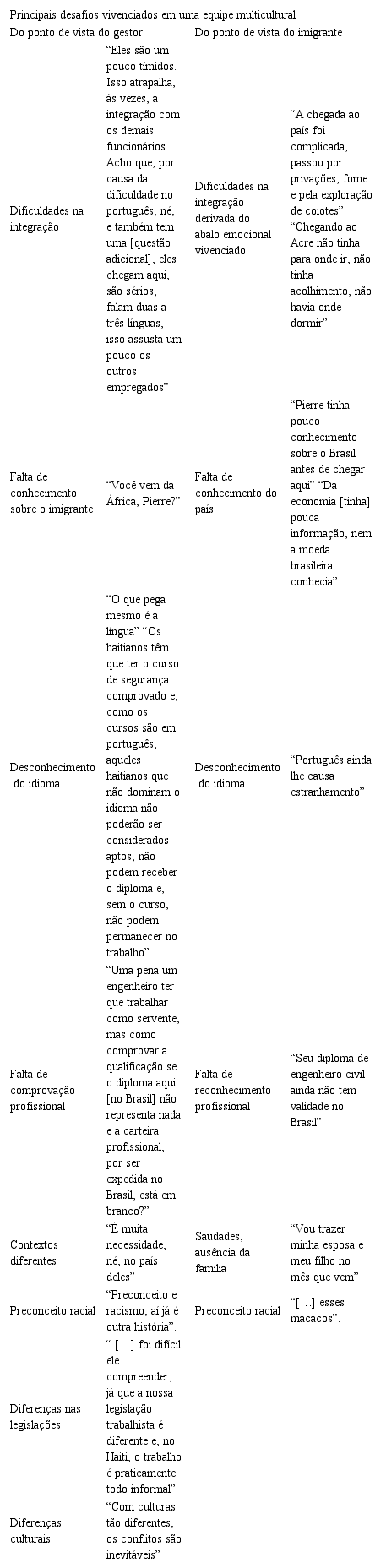 2) De acordo com os itens apontados na questão anterior, indique possíveis soluções para melhorar o cotidiano da equipe multicultural, de acordo com a literatura sugerida. Sugere-se que a turma seja dividida em duas equipes, uma com os desafios do ponto de vista dos haitianos e a outra, com o ponto de vista dos brasileiros, com o objetivo de realizar uma discussão.