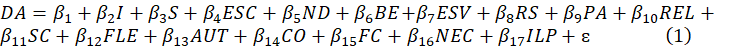 A decisão de aposentadoria (DA), categorizada pela decisão de postergar ou não a inatividade após a reunião dos requisitos legais para aposentar-se, foi classificada da seguinte forma: 0 – Aposentadoria Imediata; 1 – Postergação da aposentadoria na carreira. Desse modo, o modelo econométrico assumiu a especificação da equação (1).