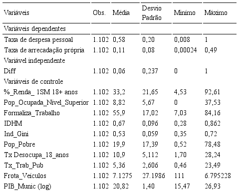 Considerando esse conjunto de variáveis, seguem as estatísticas descritivas (tabela 2).