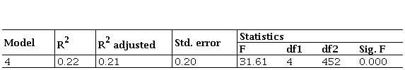 The multiple linear regression indicates that the model is adjusted, given that the result found in the F distribution test is 31.61, as presented in Table 5. Tests of normality of the residuals and homocedasticity (Breush-Pagan and White) confirmed the adjustment of the model. So, we reject the hypothesis that all coefficients are statistically equal to zero at 1% significance; that is, at least one of them is different from zero. R2 adjusted shows that the model's variables can explain 21 % of the Healthcare Services Effectiveness. Some other issues could define the rest of the effectiveness variable (Donabedian, 2005).