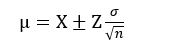 Com o intervalo de confiança, a média da população μ pode ser estimada pela fórmula: