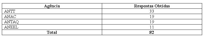 O presente estudo foi realizado com informações coletadas de respostas de funcionários de agências reguladoras federais brasileiras que lidam diretamente com representantes de empresas reguladas e grupos de interesse. Foram pesquisadas quatro Agências Reguladoras do setor de infraestrutura: Agência Nacional de Transporte Terrestre (ANTT), Agência Nacional de Aviação Civil (ANAC), Agência Nacional de Transporte Aquaviário (ANTAQ) e Agência Nacional de Energia Elétrica (ANEEL). Os questionários foram aplicados de forma presencial, entre os meses de junho e julho de 2019, e buscaram avaliar a percepção do respondente sobre um representante da iniciativa privada com quem se relacionasse diretamente em suas atividades profissionais. A avaliação por terceiros foi empregada por Laird et al. (2013), Laird, Zboja e Ferris (2012) e Kwon (2020) em estudos sobre reputação, habilidade política e desempenho. A amostra final contou com 82 respostas. A Tabela 1 sumariza o quantitativo de respostas obtidas por Agência Reguladora.