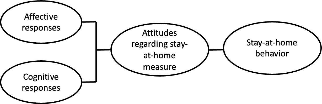 Cognitive responses reflect perceptions and information about the attitude object; affective responses refer to feelings regarding the attitude object; and conative responses are behavioral inclinations, intentions, commitments, and actions in relation to the object of attitude (Ajzen, 1989). These responses form the attitude that becomes behavior. In our study, conative responses are not considered, since we do not assess behavioral inclinations or intentions, but the actual behavior of staying-at-home, that was compulsory. Thus, we assume that the attitude, in this case, is formed by the cognitive and affective responses that result in the lockdown compliance behavior. The attitude, its components, and the association with behavior, adapted to this research context, are presented in the theoretical framework (Figure 1):