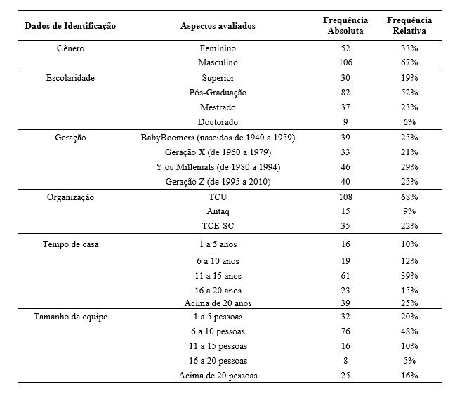 Methodology: This is a quantitative research, developed through a survey with 158 public servants from 3 different institutions, at the federal and state levels: Federal Audit Court (TCU), National Waterway Transport Agency (Antaq) and Court of Accounts for the State of Santa Catarina (TCE/SC). The analysis used descriptive statistics and structural equation modeling techniques. To measure the research constructs, scales used in other studies were adopted, whose results demonstrated their psychometric quality.