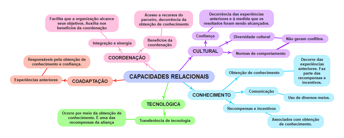 Porém, ainda mais quando envolve organizações de setores distintos, conseguir um bom relacionamento entre parceiros, bem como uma eficiente troca de informações e recursos exige a implantação de rotinas e processos bem definidos na organização. Assim, diversos autores, tais como Li, Zhou e Wu (2017), Mcgrath & O’toole (2018) e Pudjiarti & Suharnomo (2018), destacam-se a importância das capacidades relacionais, um tipo de capacidades dinâmicas. Essas capacidades podem ser compreendidas como rotinas ou habilidades desenvolvidas para que as organizações consigam coordenar e utilizar eficientemente os seus relacionamentos para alcançar os objetivos que desejarem (Mcgrath & O’toole, 2018).