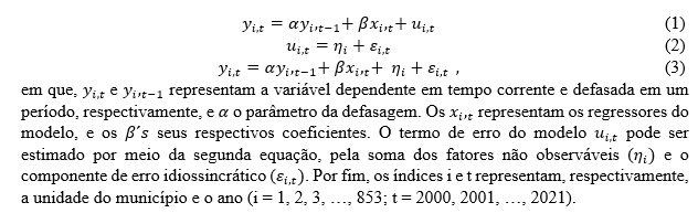 Dessa forma, é possível definir o modelo padrão para dados em painel dinâmico da seguinte forma: