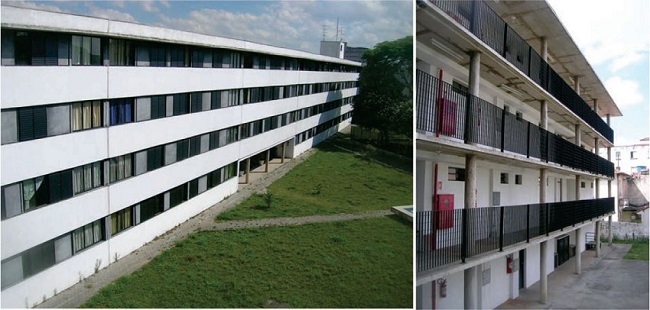 João Cantero, que entre 1990 e 2010 foi coordenador de projetos da COHAB‑SP, e Khaled Ghoubar, professor da Universidade de São Paulo, corroborando questões pontuadas no parágrafo anterior, afirmam que habitações de baixa renda no Brasil e, notadamente em São Paulo, caracterizam‑se por uma produção em grande escala, em locais periféricos da área urbanizada, constituindo‑se “meras reproduções empobrecidas da produção do mercado imobiliário” (CANTERO & GHOUBAR, 2010, p.2). O conjunto habitacional da Figura 2 é paradigmático desse local e escala mencionados.