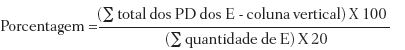 Para análise das informações, foi elaborada uma matriz de sistematização que apresenta as características presentes no espaço edificado, características do PPP e a quantificação dos Pontos de Difração (PD) que aparecem na fala dos docentes em relação à predominância do autoritarismo educacional e/ou da educação libertária (Tabela1). No que diz respeito à quantificação dos pontos de difração, considerou que a soma dos PD de cada entrevistado por dimensão de análise, em função do autoritarismo educacional, da educação libertária e do silêncio, deveria ser sempre ≤20. Para cálculo da porcentagem, utilizou‑se a seguinte fórmula:
