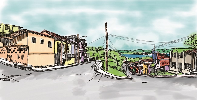En el centro histórico de Santiago de Cuba descubrió una fuente infinita de estas escenas que artistas, poetas y arquitectos han interpretado y fijado en sus obras. Este fragmento de ciudad que se desliza entre colinas hacia la bahía, que es mirador y laberinto; de perspectivas alternas que se abren a plazuelas y cierran en callejones sin salida; de policromía estridente y vejez sobria, de ascender y descender constantes en su deambular; vinculada definitivamente al mar y las montañas; es la inspiración para dibujar y capturar fragmentos de la historia que narra día tras día su paisaje urbano.