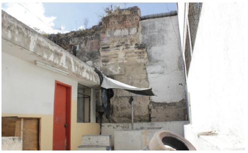 No processo de encontrar esses vestígios procurou-se também as ruínas da Companhia de Jesus, localizadas no interior do Colégio Bilíngue. Essa estrutura que algum dia foi uma significativa representação de um estilo barroco, agora está abandonada no fundo do pátio do colégio, atrás de uma construção recente, mas totalmente abandonada e deteriorada, também está adoçado ao Banco Pichincha (Figura 6).