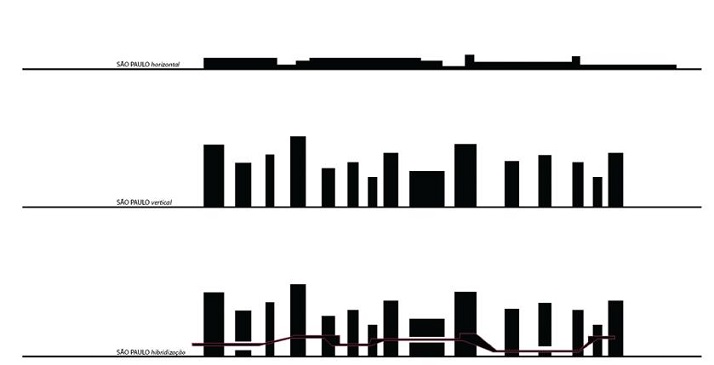 O “cruzamento de programas” visível no elevado, fruto da inteligência dispersa sem nenhum desígnio a priori, sinaliza que essa tipologia também pode emergir sem um desenho definido anteriormente, nascido espontaneamente através dos usuários dispostos a arriscar-se à exposição. Ao arquiteto, nesse caso, caberia identificar e explorar, “provocar” a forma mais do que consolidá-la? Eis a questão que se faz em presença aqui - as propostas sobre a “viabilidade” do elevado em parque resultariam em falência de uma arquitetura em ebulição? Como poderia ser uma intervenção no local? Seria este um momento de um novo paradigma do desenvolvimento de São Paulo, deixando para trás as fases horizontal (até o século XX) e vertical (século XX), passando a aferir a hibridização como conjecturas projetivas?