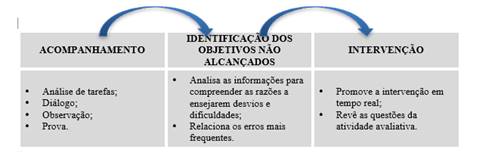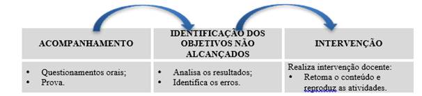 Há demonstração, ainda, de uma preocupação com o redimensionamento da ação docente, indicativo de que a avaliação constitui um momento oportuno para avaliar o trabalho levado a termo por elas, em relação ao desenvolvimento dos alunos (DEPRESBISTERIS, 1999; LUCKESI, 2011; MOREIRA, 2005). Nota-se um estado orientado para a adequação do ensino, de forma a propiciar a operacionalização de situações favoráveis à aprendizagem, ajustando as intervenções aos obstáculos que se apresentam.