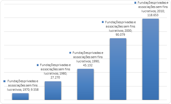 No Brasil, a reconfiguração estatal a partir das reformas mencionadas favoreceu o aumento volumétrico de entidades do Terceiro Setor atuando em diversos campos das políticas sociais e educacionais financiadas pela União, pelos estados e pelos municípios. A pesquisa intitulada As Fundações Privadas e Associações Sem Fins Lucrativos no Brasil 2010 (FASFIL), realizada pelo Instituto Brasileiro de Geografia e Estatística (IBGE), no ano 2012, informa a acelerada expansão do Terceiro Setor no Brasil, conforme o Gráfico 1: