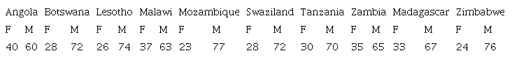 Economic and social development in any country relies heavily on a sound technology base, which can be achieved by putting emphasis on STEM subjects at all levels of the education system. Ensuring good health, fighting diseases, protecting the environment, farming and developing agriculture, developing new industries and technologies, and even building resilience to climate change are all activities that require knowledge and skills offered by these disciplines. It therefore, follows that there is need to harness the intellectual and scientific capacity of both men and women for a sustainable social and economic development of any country. Ironically, STEM constitutes the areas within the educational system where gender disparity, in several of the poorest countries of the world, is greatest (SINNES, 2006; CLEGGY, 2007; FORUM FOR AFRICAN WOMEN EDUCATIONALISTS, 2008; ZIMBABWE, 2010). Research has shown a persistently visible gender disparity in these disciplines which is glaring from secondary school level and beyond, characterized by low female enrolment, poor performance and low retention. For example, Board 1 below shows the percentages of men and women in the faculties of science in selected SADC countries.