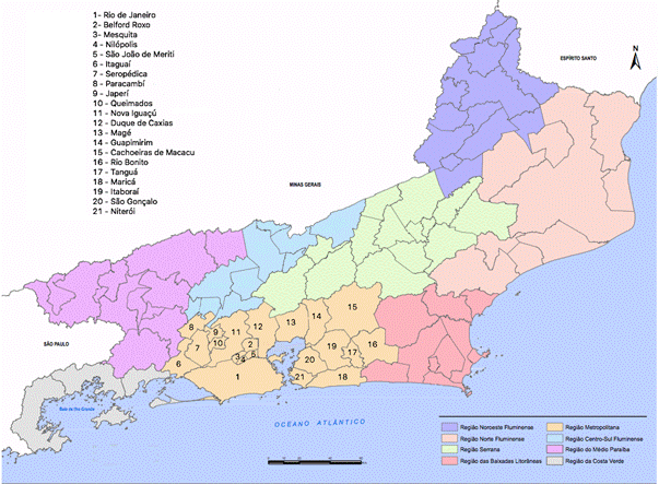 FUNDAÇÃO CEPERJ. Estado do Rio de Janeiro divisão político-administrativa. <http://www.ceperj.rj.gov.br/ceep/info_territorios/divis_politico_administrativo.html>. Acesso em: 14 nov. 2017.