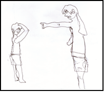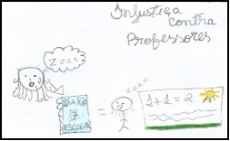 [...] A professora é muito marrenta e durona. [...] eu não gosto da atitude da minha professora. Os meus amigos também não gostam dela. Ela fala que vai deixar a gente sem recreio, mas ela nunca faz nada. Ela grita, e grita bem alto com todo mundo na sala de aula, depois começa a adulação, eu odeio isso (P20). Era uma vez a professora que estava escrevendo. Ela botou todo mundo sem recreio. Ela virou para fazer o dever no quadro, se virou e continuou a fazer o dever. Aí, João estava conversando, ela botou de castigo, e depois José ficou também, aí depois Marcos ficou também. Aí, Pipoca conversou com Picolé e ficou também sem recreio, e depois todos ficaram também (P22). (informações verbais).