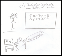 As produções relacionadas a essa categoria reforçam a ideia de uma escolarização centrada na aprendizagem de conteúdos em sala de aula, sem ênfase na troca de conhecimentos com os demais colegas, no jogo, na competição, na disputa, na falta de ajuda durante a busca por uma resolução de conflitos, etc. Nota-se que o professor é representado como um profissional competente, em contrapartida, chato. Talvez pelo fato de não optar por atividades mais dinâmicas em sala, que envolvam os alunos, por um ensino que atenda às expectativas e demandas do mundo contemporâneo. Reforça o aluno que o professor é um profissional “competente, mas um pouco chato. Diz que vai ter chamada oral ou prova, [...] as explicações são péssimas, às vezes eu não entendo quase nada, na verdade não entendemos nada, [...] mas nós adoramos ele.” (P76) (informações verbais).